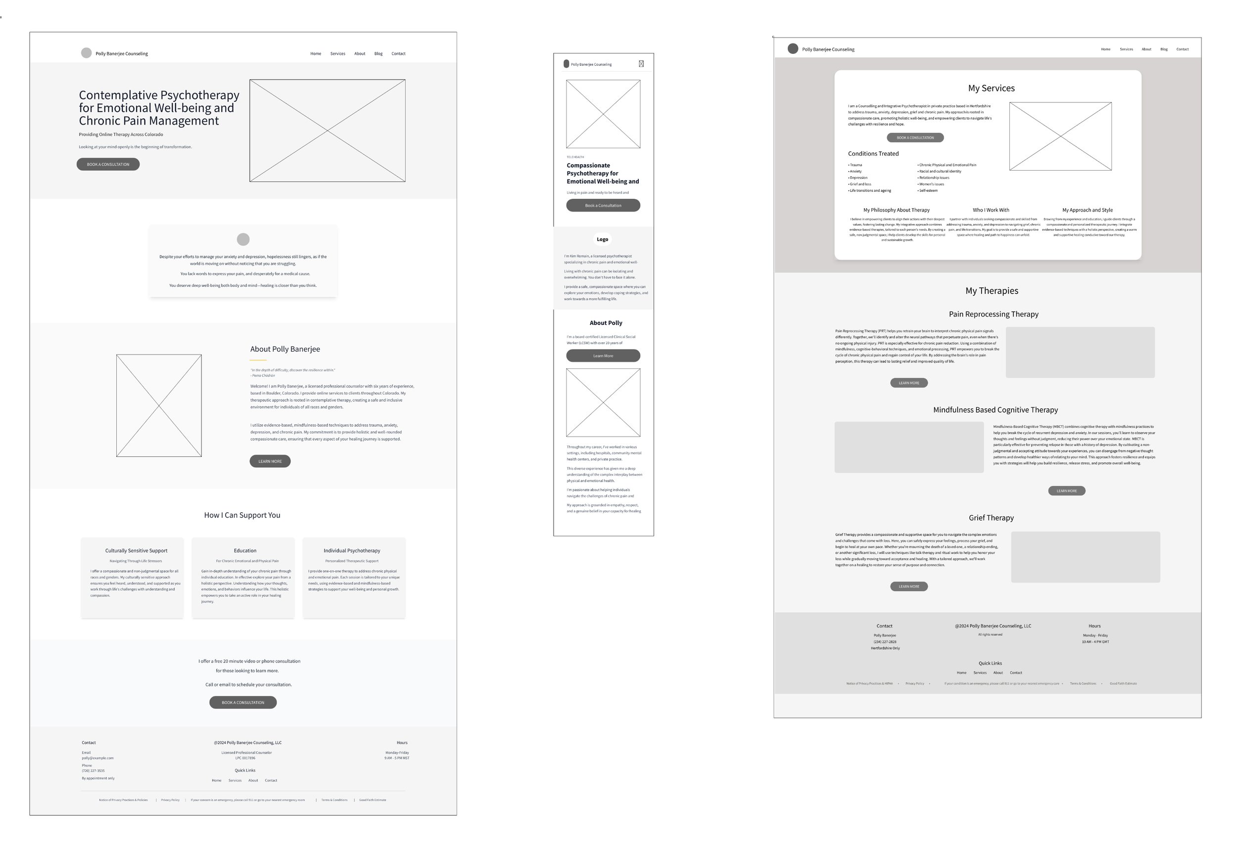Polly Banerjee is a a licensed professional counselor specializing in contemplative psychotherapy and chronic pain management, She needed a professional online presence that would: