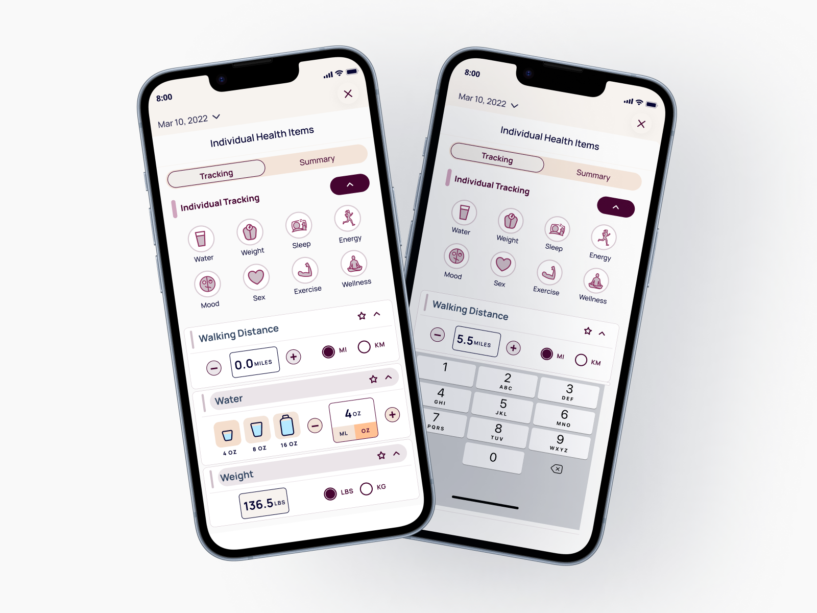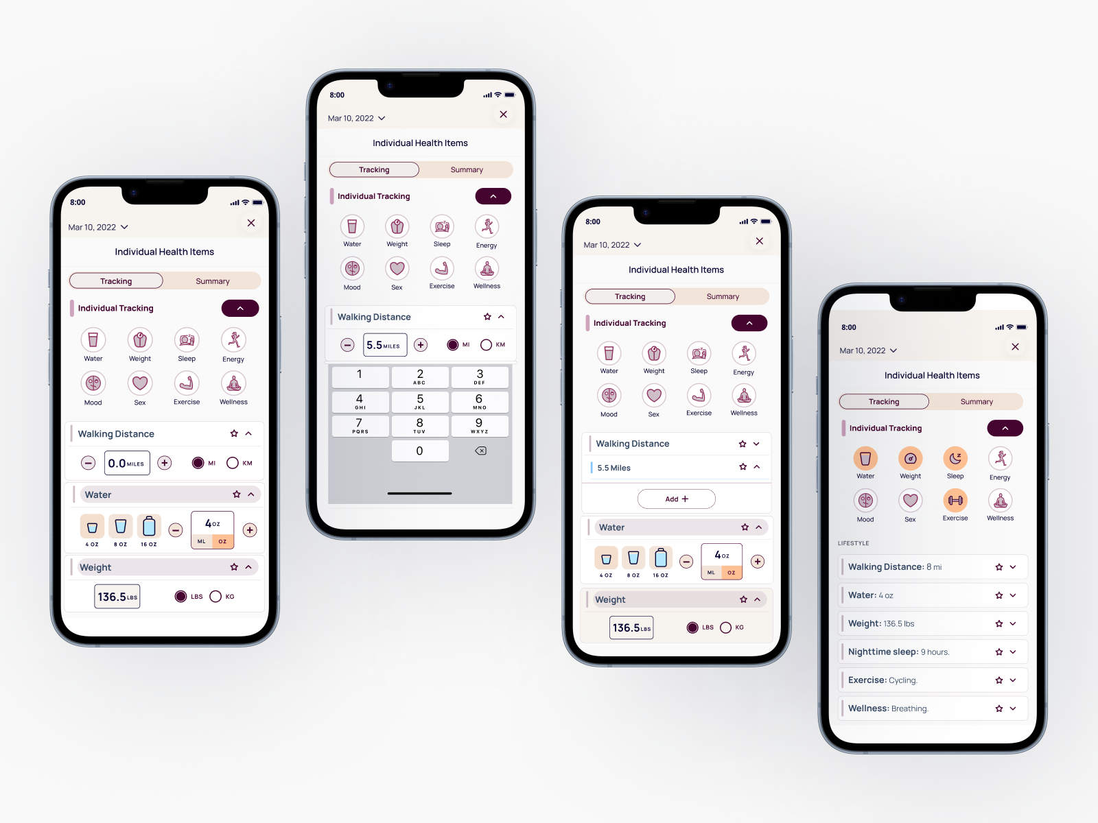 For each metric, I mapped the corresponding Apple Health or Fitbit representation and ensured the UI adhered to: